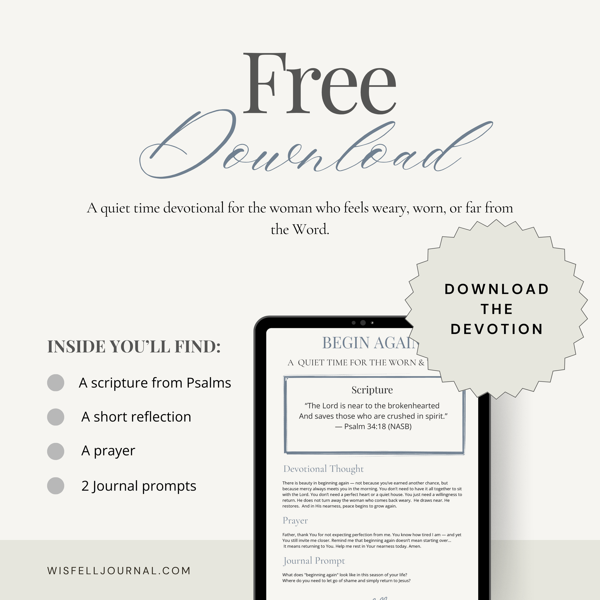 This free, printable one-day devotional is for the woman who feels spiritually scattered, emotionally drained, or simply longing to come back to Jesus without pressure or performance.